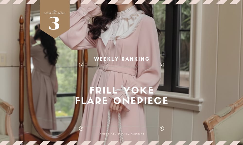 【2点セット】配色リボンヘムフリルワンピ+フリルストラップフレアジャンスカ ・50112