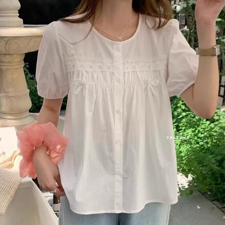 ボリュームスリーブレースラウンドカラーブラウス ・67546