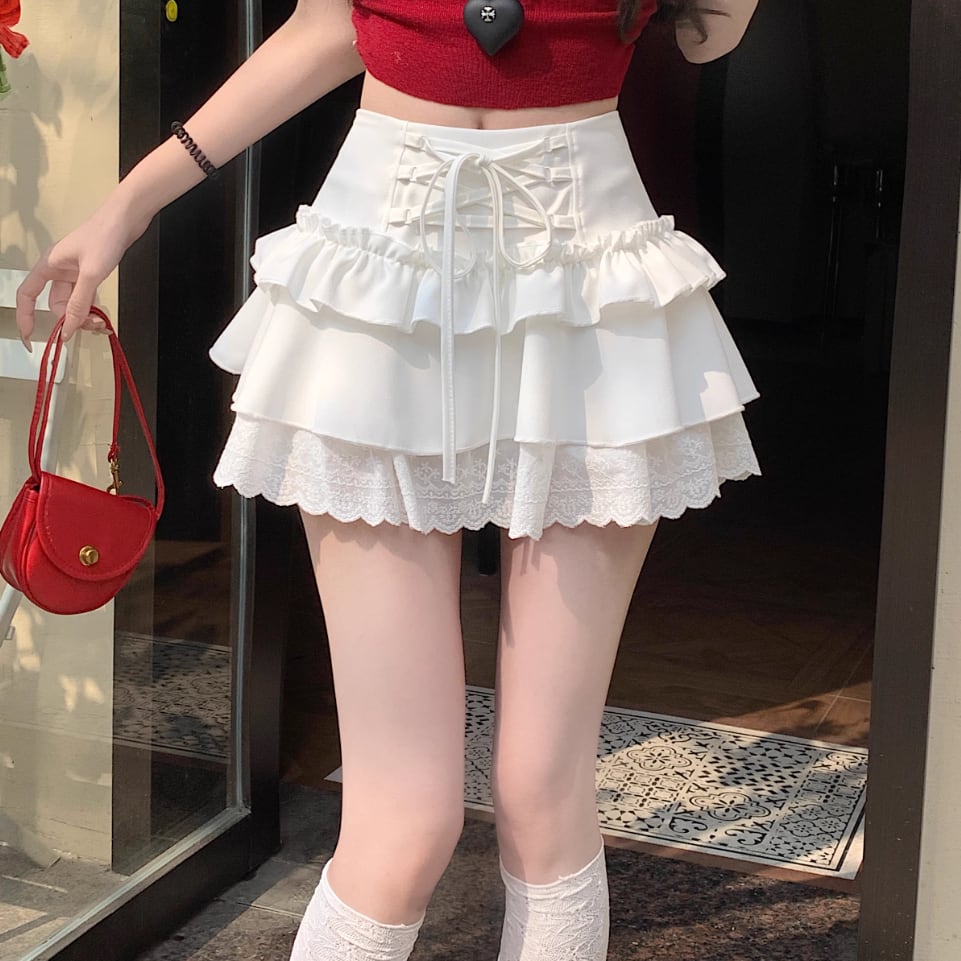 2色/ハイウエストフリルリボンスカート ・37218