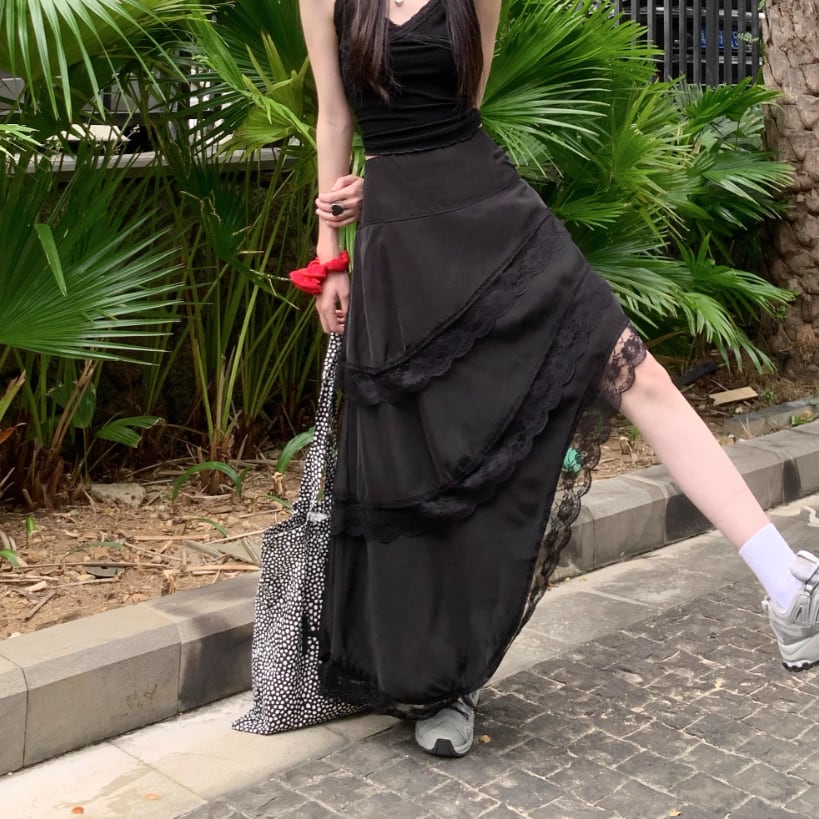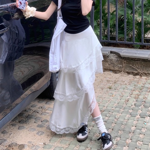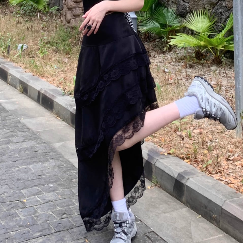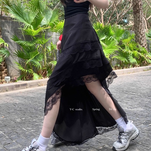 サイドリボンレースヘムスカート ・72298