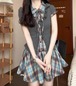 【2点セット】配色リボンヘムフリルワンピ+フリルストラップフレアジャンスカ ・50112