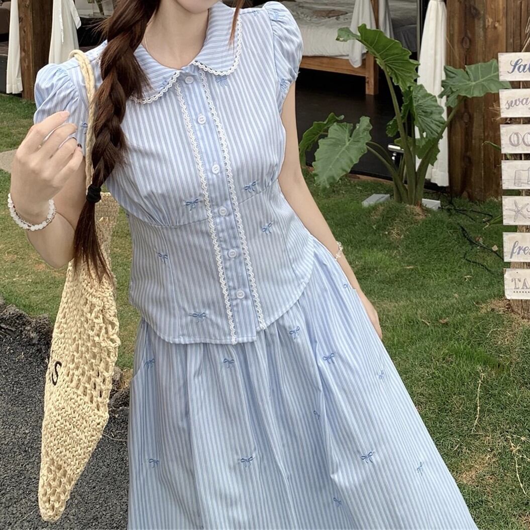 ▽Instagram「新作情報配信中」 フォローお願いいたします。 https://www.instagram.com/sucrier_closet/ ▼サイズ [ Sサイズ ] ブラウス:着丈46cm バスト84cm 肩幅34cm 袖丈12.5cm スカート:着丈82cm ウエスト64cm [ Mサイズ ] ブラウス:着丈47cm バスト88cm 肩幅35cm 袖丈13cm スカート:着丈83cm ウエスト68cm [ Lサイズ ] ブラウス:着丈48cm バスト92cm 肩幅36cm 袖丈13.5cm スカート:着丈84cm ウエスト72cm ※1-3cm程度の誤差がある場合がございます。予めご了承ください。 ▼内容 スカートウエストは伸縮性あり ▼シーズン 春,夏 ▼同じカテゴリの商品はこちら https://www.sucrier.jp/categories/1737171 ▽お支払い方法 ・クレジットカード決済 ・キャリア決済 (docomo/au/Softbank/Y!mobile) ・後払い決済 (商品お届け後コンビニ払いなど) ▽注意点 ※こちらの商品は決済から10日-3週間前後でのお届けとなります。 ※配送日時指定等に関しては、ご指定できないことご了承くださいませ。 ※できる限り早くお届けできるように手配させて頂きます。 ※検品はしておりますが、もし届いた商品に不備がありましたら、誠実に対応させていただきます。 商品ID:SC069252