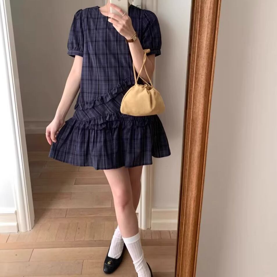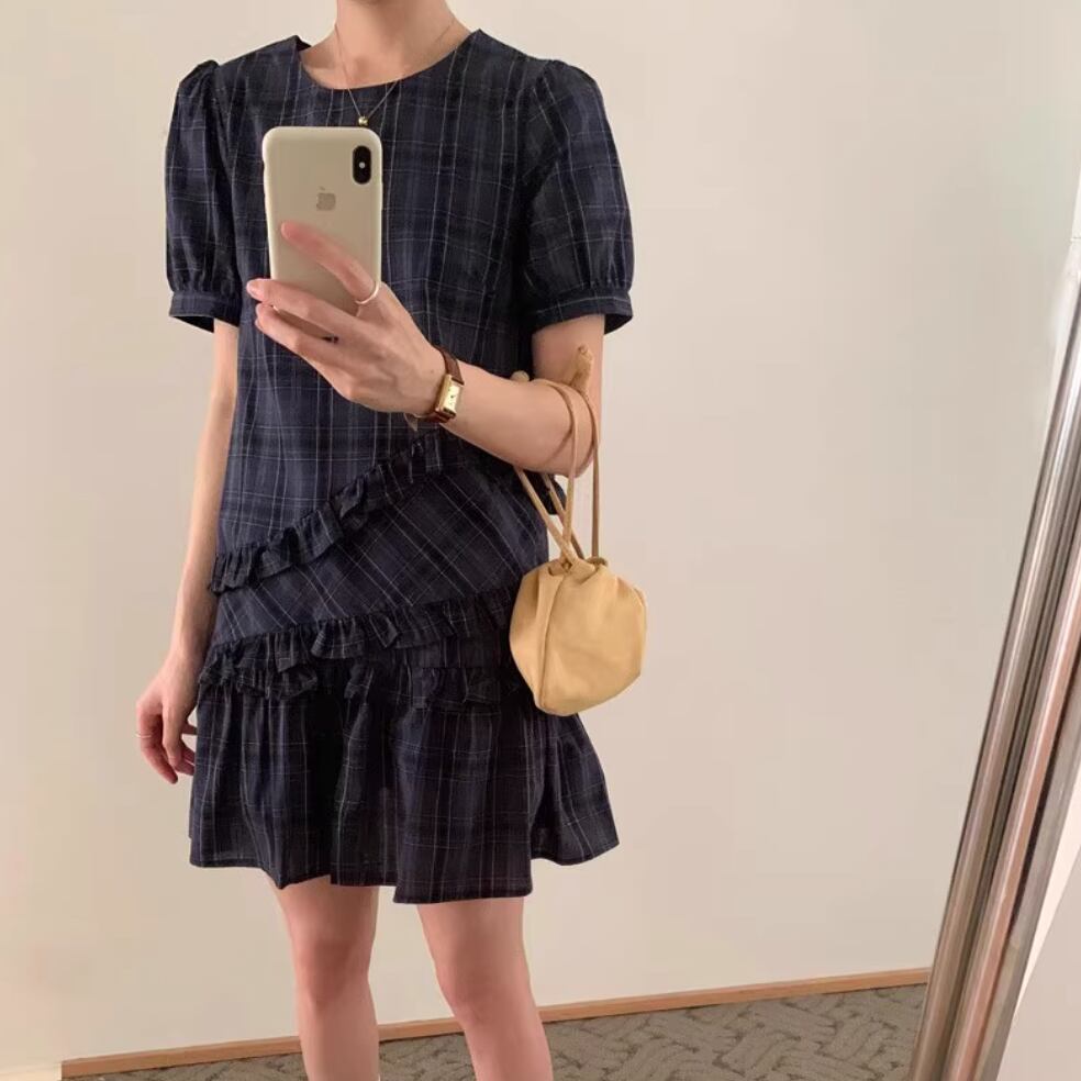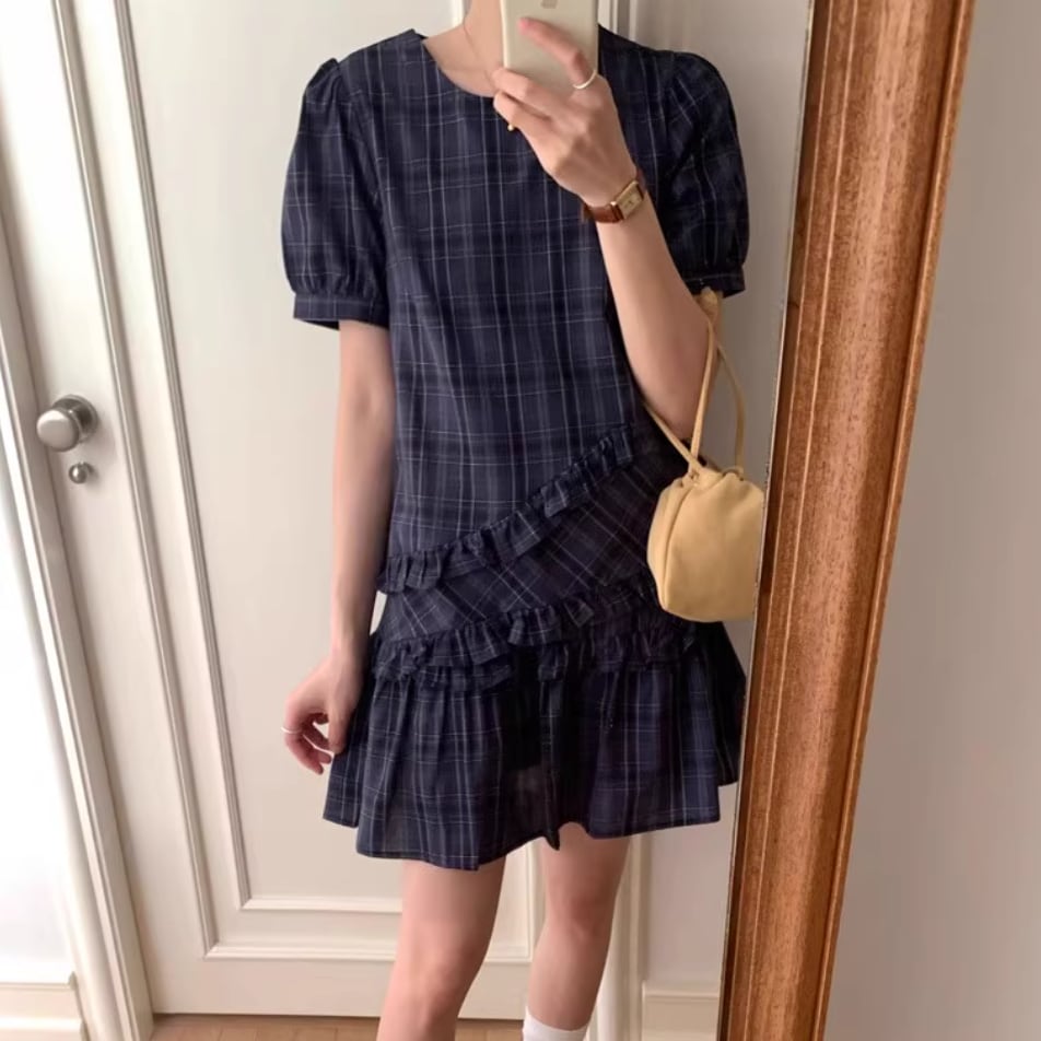 バイカラーリボンフリルヘムワンピ ・71394