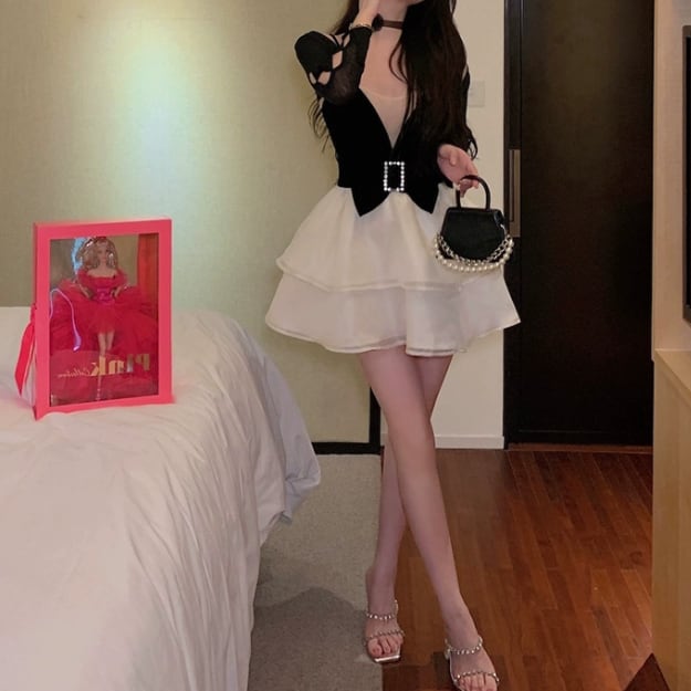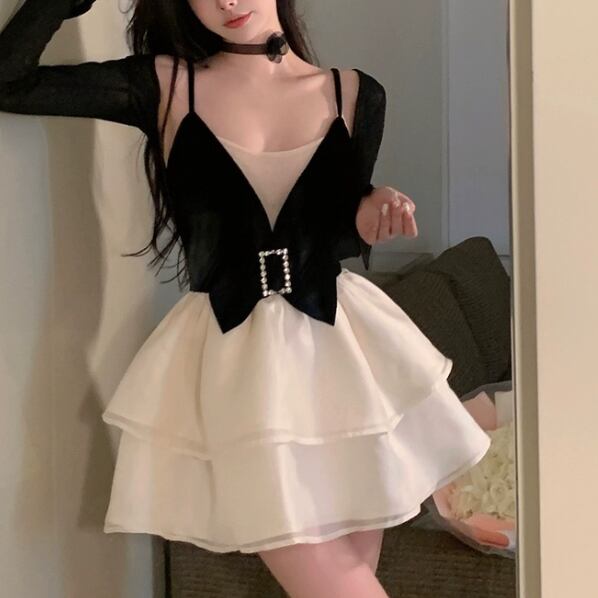 【2点セット】ショートジャケット+ファートリムティアードリボンキャミワンピ ・63097