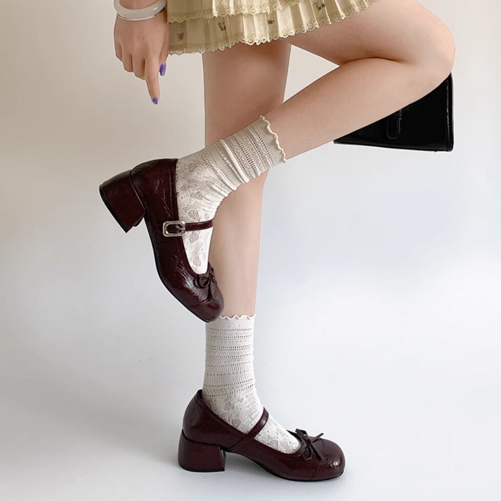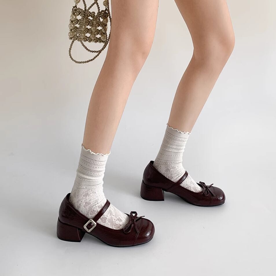 6色/レースフリルリボンベルテッドパンプス ・65719