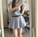 【2点セット】ストライプ柄パフスリーブワンピ+ベルト ・68546