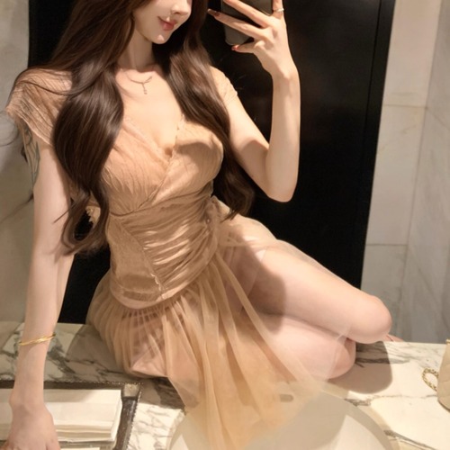 【2点セット】ショートジャケット+ファートリムティアードリボンキャミワンピ ・63097
