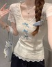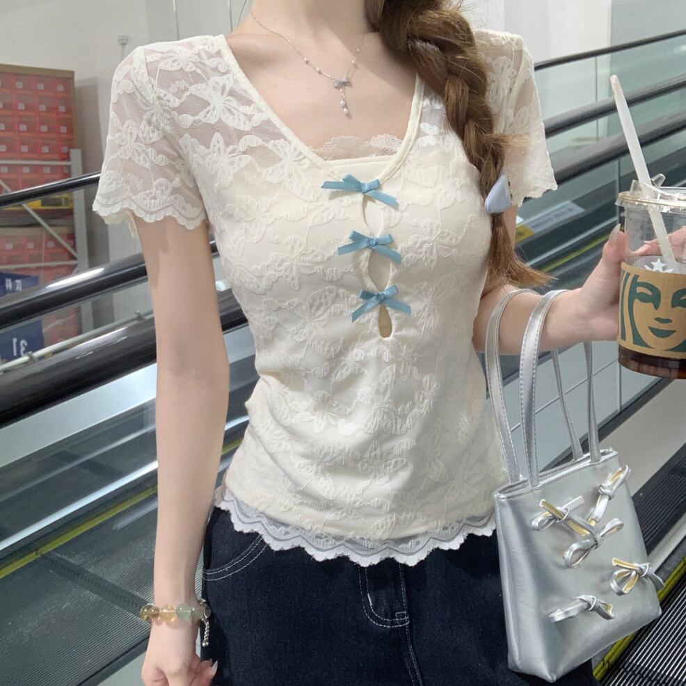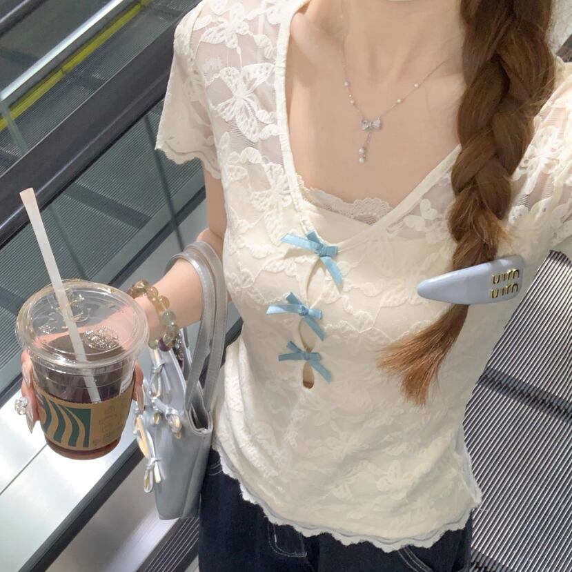 レースカラーアシメボタンドッキングトップス ・71106