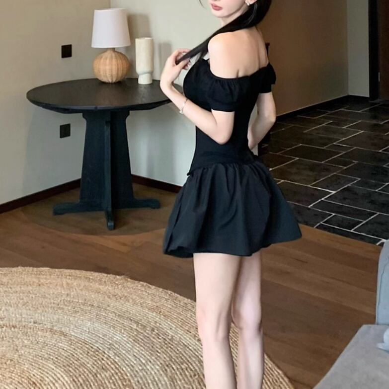 【2点セット】配色リボンヘムフリルワンピ+フリルストラップフレアジャンスカ ・50112
