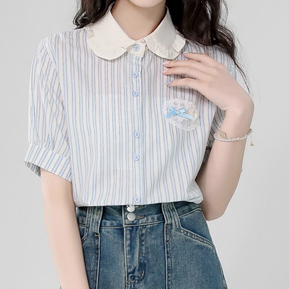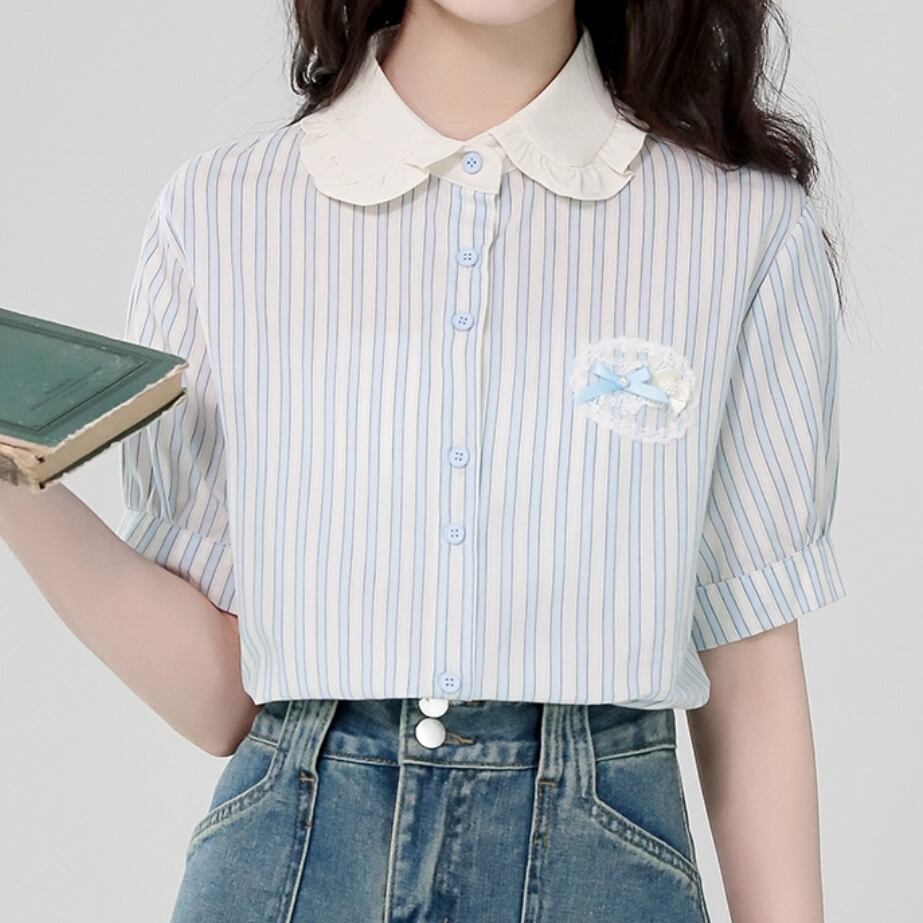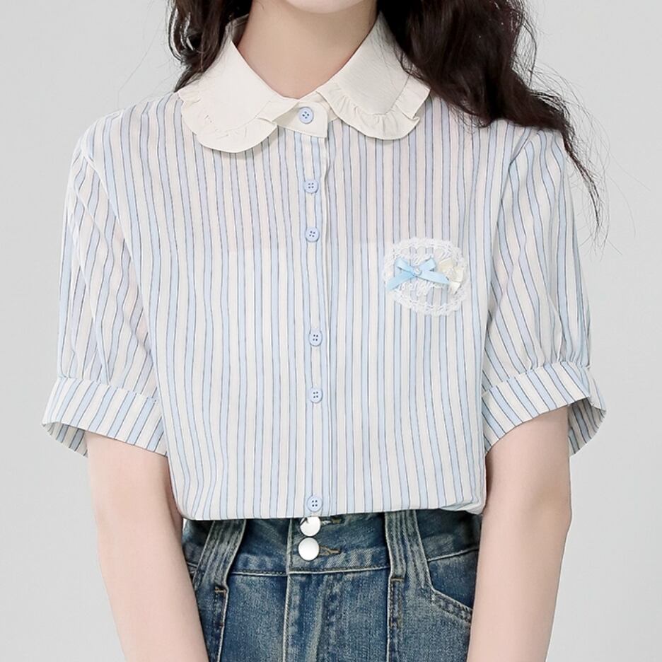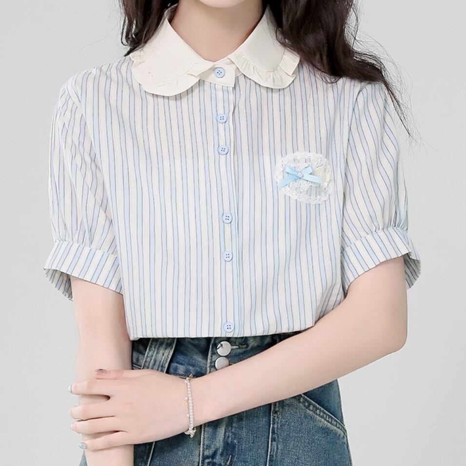 ボリュームスリーブレースラウンドカラーブラウス ・67546