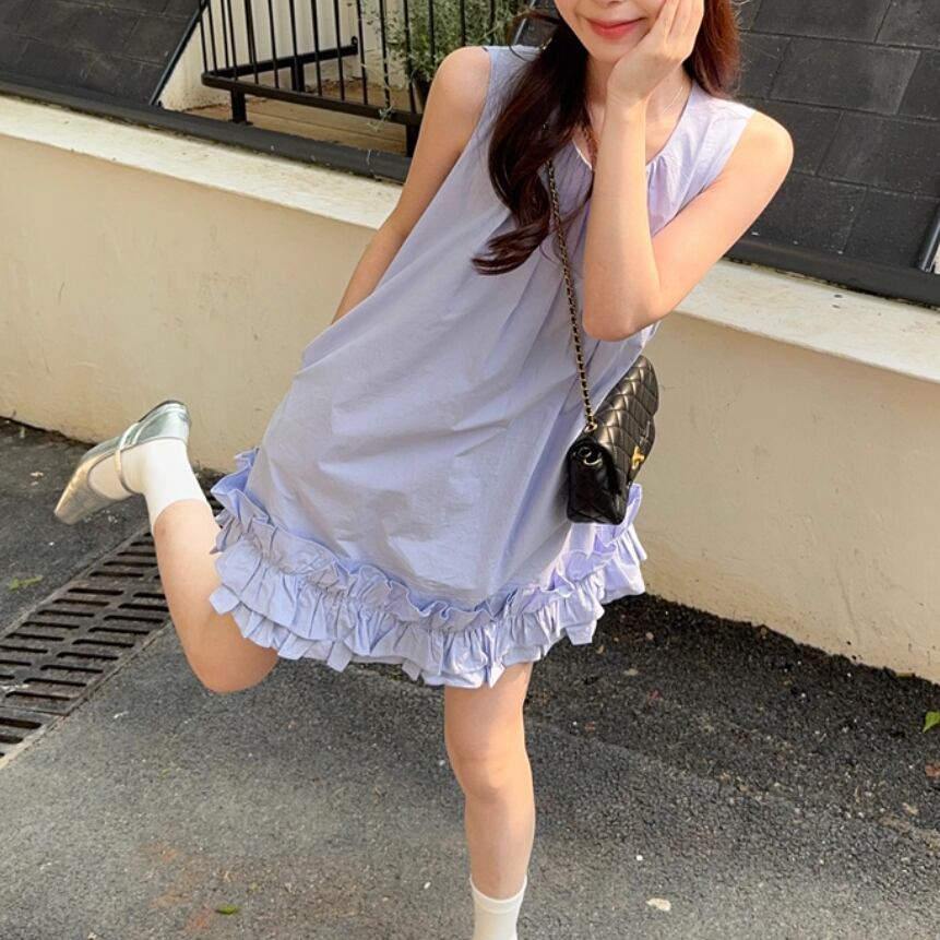 バイカラーリボンフリルヘムワンピ ・71394