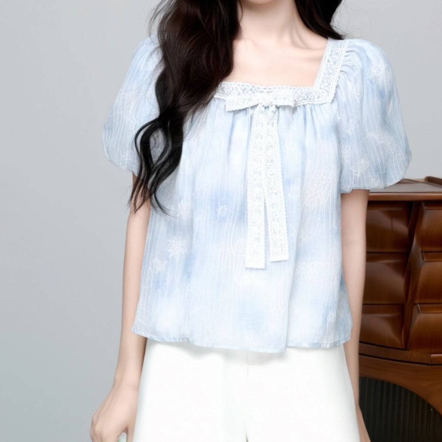 ボリュームスリーブレースラウンドカラーブラウス ・67546
