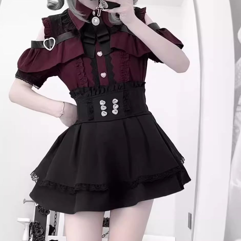 ▽Instagram「新作情報配信中」 フォローお願いいたします。 https://www.instagram.com/sucrier_closet/ ▼カラー グレー+ブラック(画像2枚目) レッド+ブラック(画像3枚目) ピンク+ブラック(画像4枚目) ▼サイズ [ Sサイズ ] ブラウス:着丈54cm バスト86cm 肩幅37cm スカート:着丈39.5cm ウエスト60-70cm [ Mサイズ ] ブラウス:着丈55cm バスト90cm 肩幅38cm スカート:着丈40.5cm ウエスト64-74cm [ Lサイズ ] ブラウス:着丈56cm バスト94cm 肩幅39cm スカート:着丈41.5cm ウエスト68-78cm [ XLサイズ ] ブラウス:着丈57cm バスト98cm 肩幅40cm スカート:着丈42.5cm ウエスト72-82cm ※1-3cm程度の誤差がある場合がございます。予めご了承ください。 ▼シーズン 春,夏 ▼同じカテゴリの商品はこちら https://www.sucrier.jp/categories/1737171 ▽お支払い方法 ・クレジットカード決済 ・キャリア決済 (docomo/au/Softbank/Y!mobile) ・後払い決済 (商品お届け後コンビニ払いなど) ▽注意点 ※こちらの商品は決済から10日-3週間前後でのお届けとなります。 ※配送日時指定等に関しては、ご指定できないことご了承くださいませ。 ※できる限り早くお届けできるように手配させて頂きます。 ※検品はしておりますが、もし届いた商品に不備がありましたら、誠実に対応させていただきます。 商品ID:SC070528