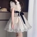【2点セット】ストライプ柄パフスリーブワンピ+ベルト ・68546