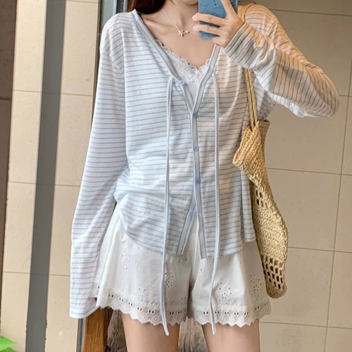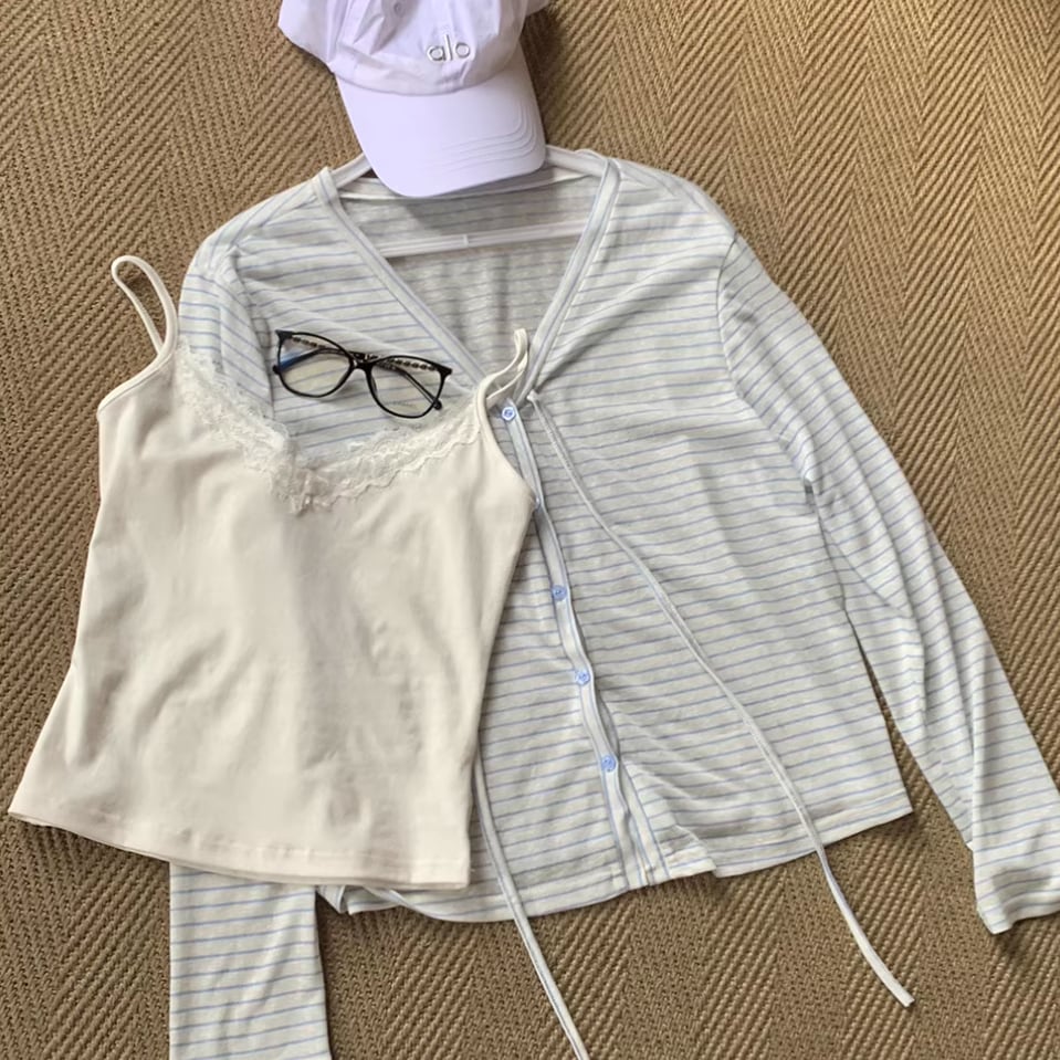 【2点セット】3色/リボンクロップドキャミソール+スカラップレースブラレット ・67379