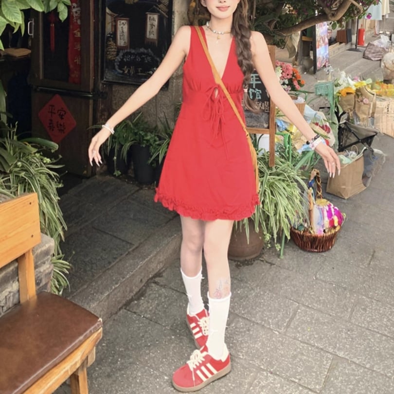 バイカラーリボンフリルヘムワンピ ・71394