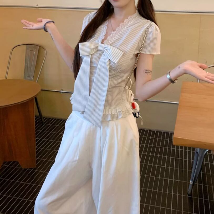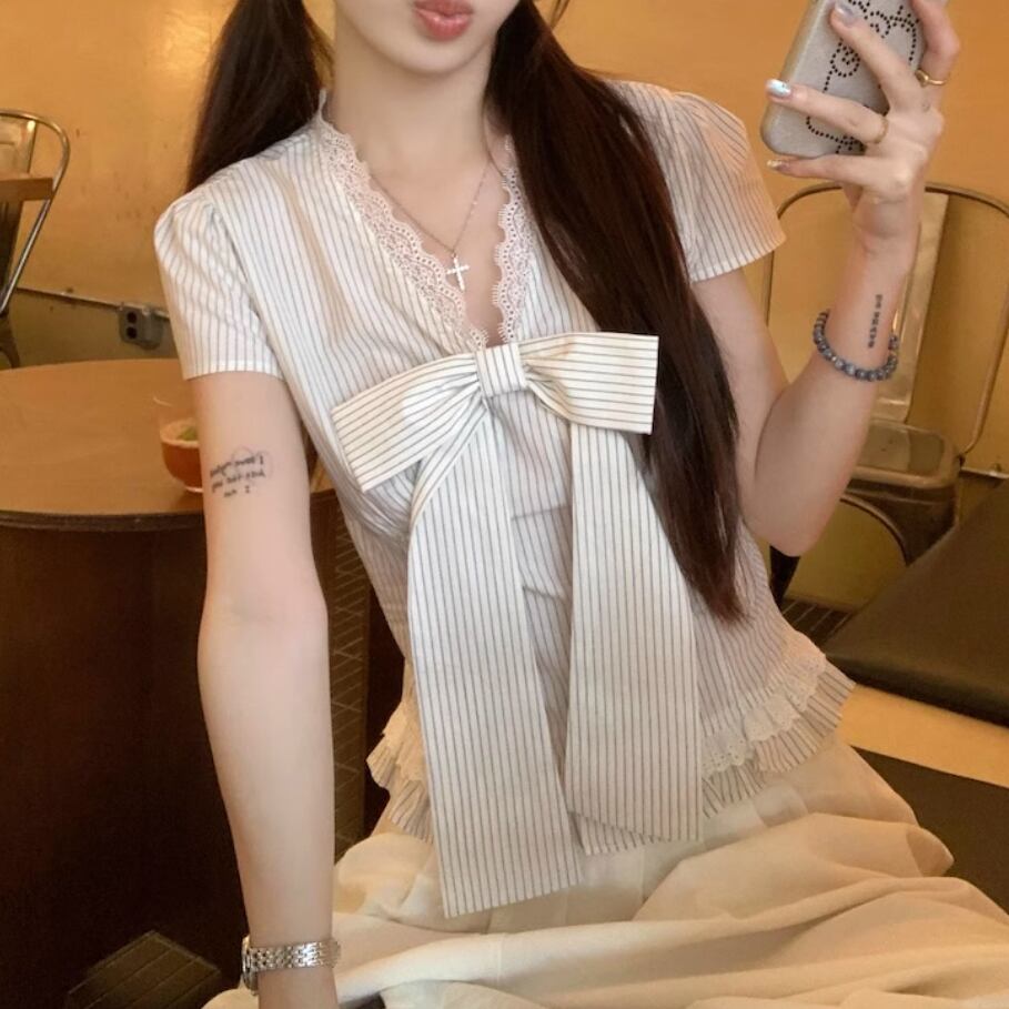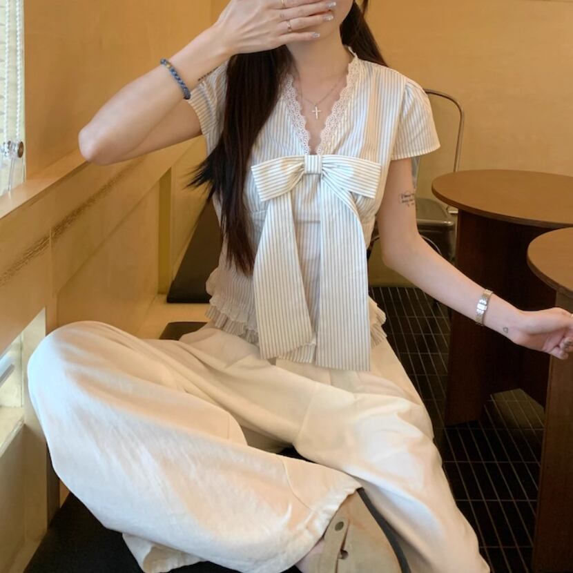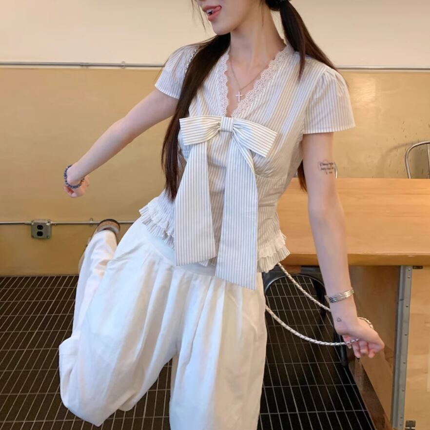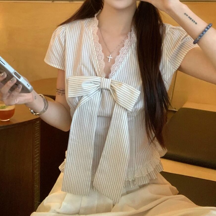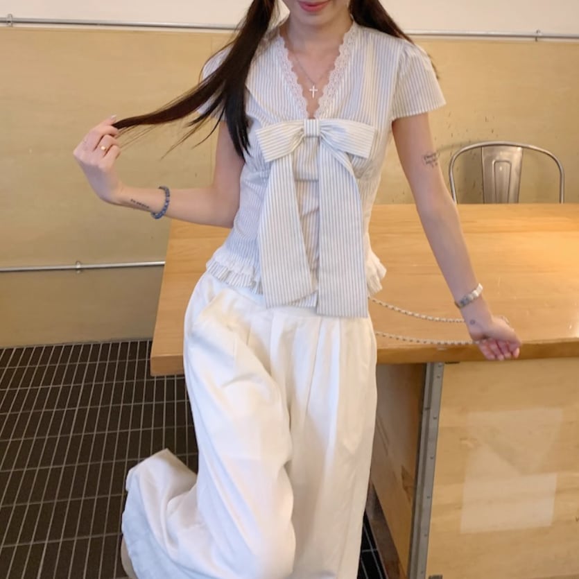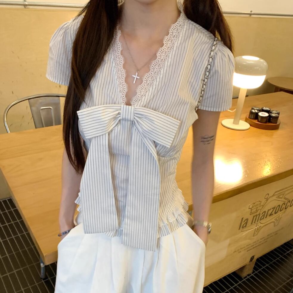 ボリュームスリーブレースラウンドカラーブラウス ・67546