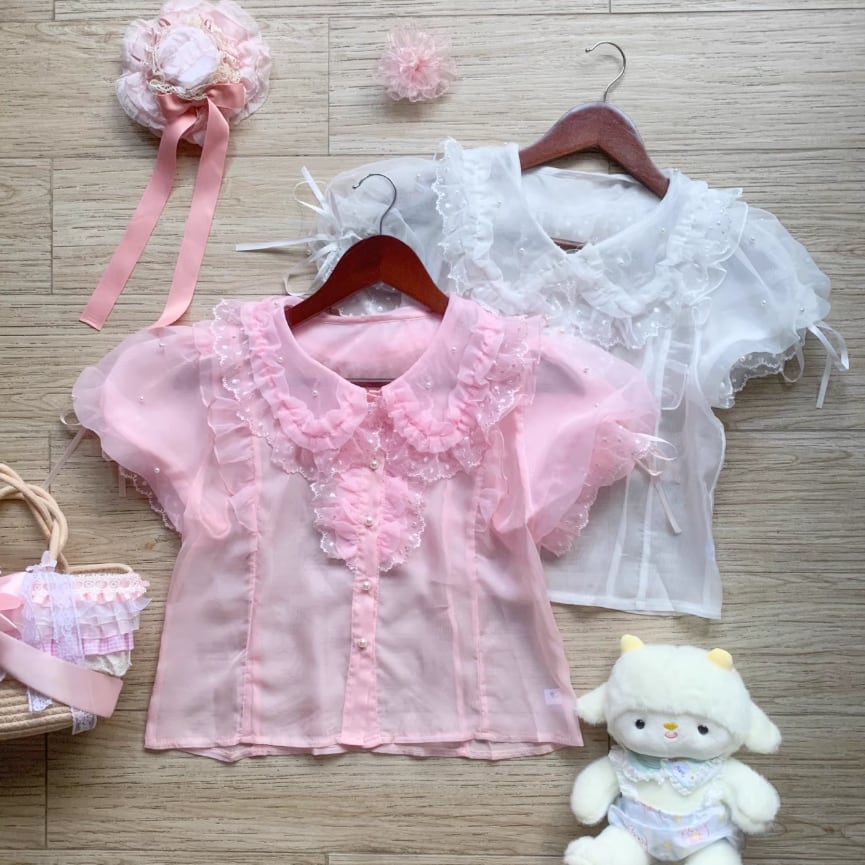 ボリュームスリーブレースラウンドカラーブラウス ・67546