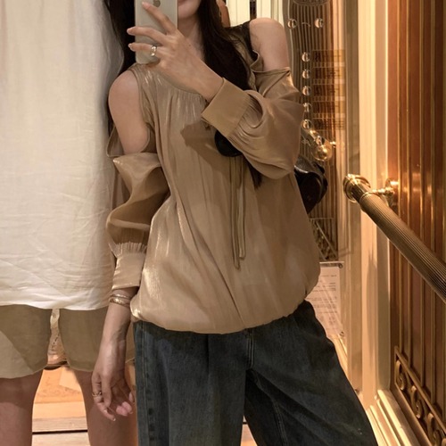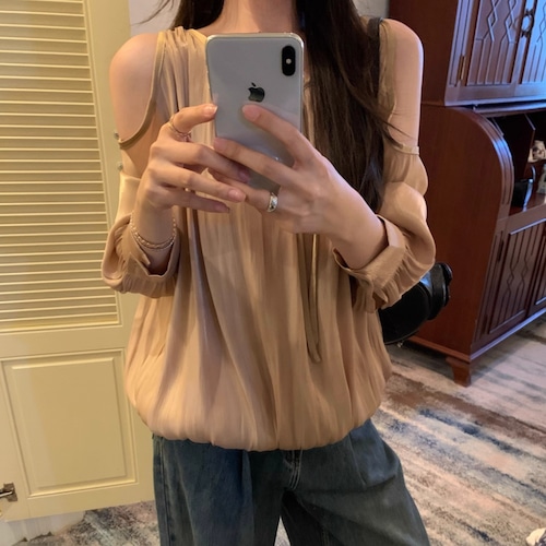 パフスリーブフリルトリムブラウス ・73450