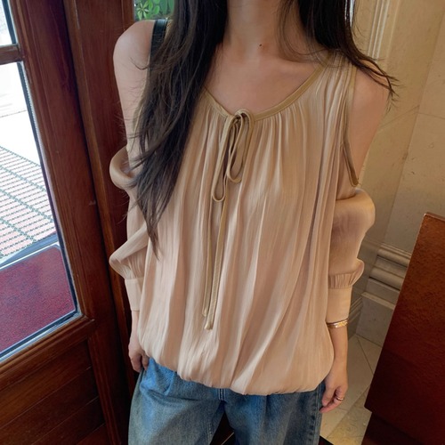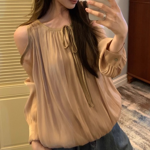 フリルネックボウタイブラウス ・74030