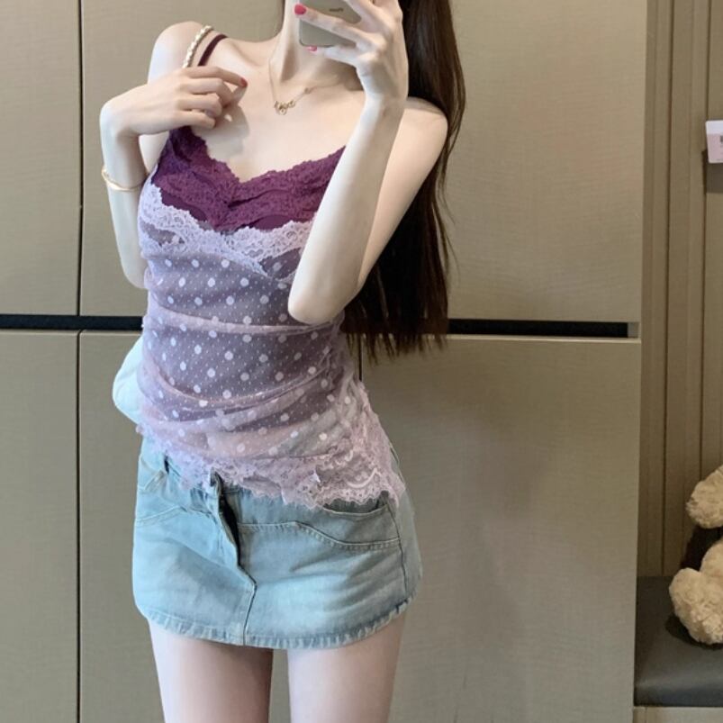 【2点セット】3色/リボンクロップドキャミソール+スカラップレースブラレット ・67379