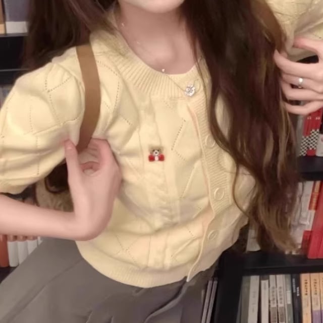 リボンステッチパフスリーブニット ・73027