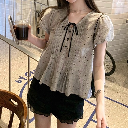 ボリュームスリーブレースラウンドカラーブラウス ・67546