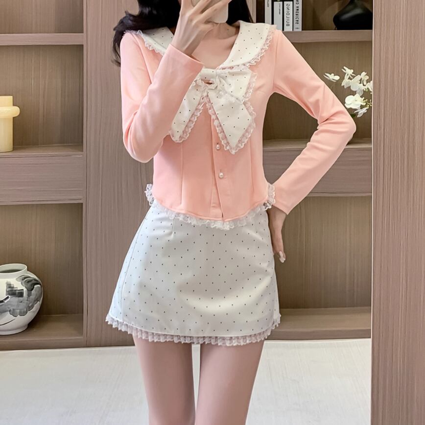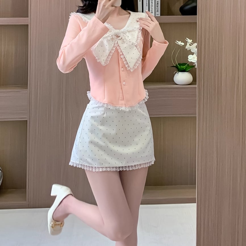 【2点セット】ダブルボタンボウタイチェックジャケット+ミニスカ ・59729