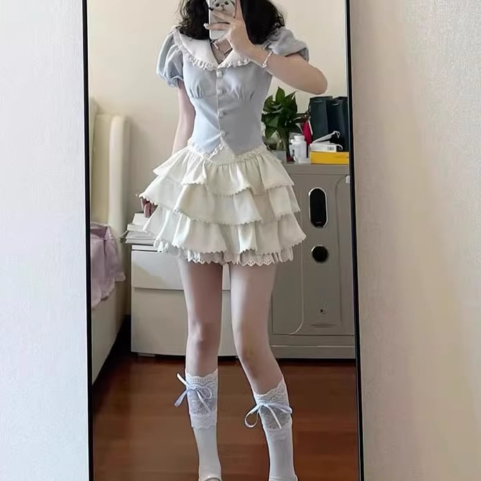 【3点セット】ショート丈ジャケット+リボンチューブトップ+フリルスカパン ・66750