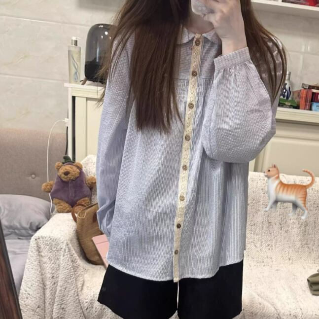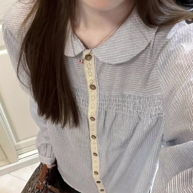 ボリュームスリーブレースラウンドカラーブラウス ・67546