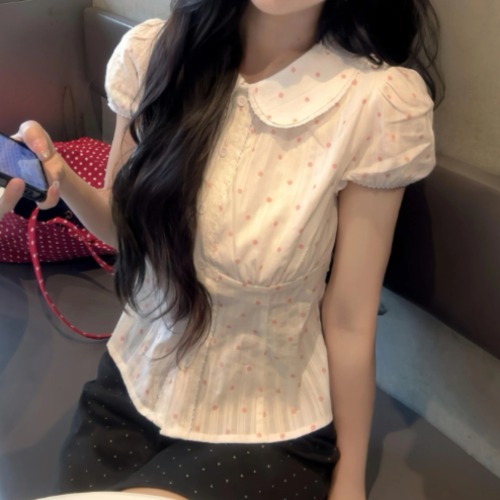 2色/ギャザーウエストスキッパーカラーシャツ ・75333