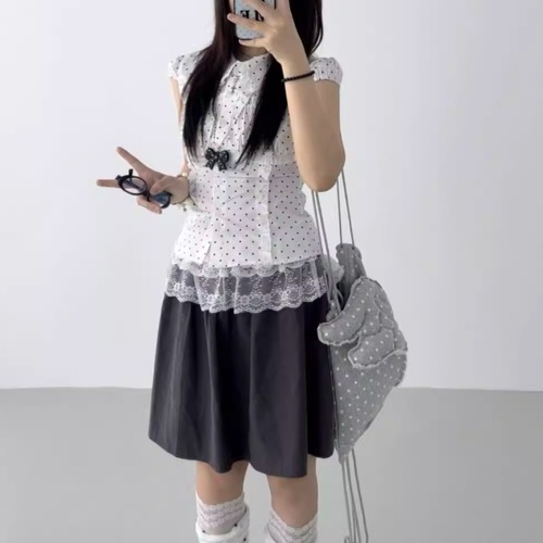 ボリュームスリーブレースラウンドカラーブラウス ・67546