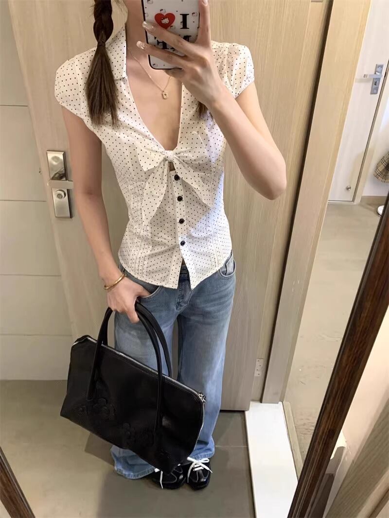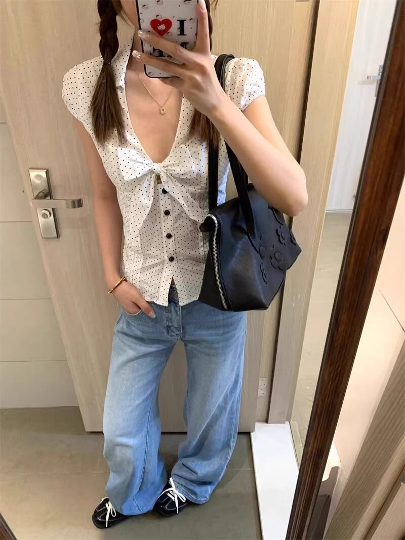 2色/フリルネックリボンブラウス ・60387