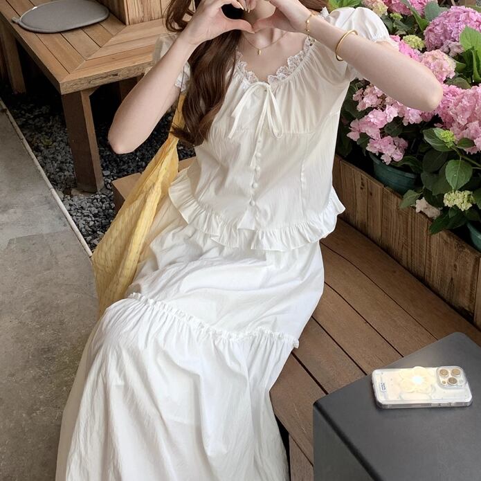 ▽Instagram「新作情報配信中」 フォローお願いいたします。 https://www.instagram.com/sucrier_closet/ ▼カラー ホワイト ▼サイズ [ Sサイズ ] トップス:着丈48cm バスト90cm 袖丈28cm スカート:着丈84cm ウエスト58-72cm [ Mサイズ ] トップス:着丈49cm バスト94cm 袖丈29cm スカート:着丈85cm ウエスト62-76cm [ Lサイズ ] トップス:着丈50cm バスト98cm 袖丈30cm スカート:着丈86cm ウエスト66-80cm [ XLサイズ ] トップス:着丈51cm バスト102cm 袖丈31cm スカート:着丈87cm ウエスト70-84cm ※1-3cm程度の誤差がある場合がございます。予めご了承ください。 ▼シーズン 春,夏 ▼同じカテゴリの商品はこちら https://www.sucrier.jp/categories/1737171 ▽お支払い方法 ・クレジットカード決済 ・キャリア決済 (docomo/au/Softbank/Y!mobile) ・後払い決済 (商品お届け後コンビニ払いなど) ▽注意点 ※こちらの商品は決済から10日-3週間前後でのお届けとなります。 ※配送日時指定等に関しては、ご指定できないことご了承くださいませ。 ※できる限り早くお届けできるように手配させて頂きます。 ※検品はしておりますが、もし届いた商品に不備がありましたら、誠実に対応させていただきます。 商品ID:SC070905