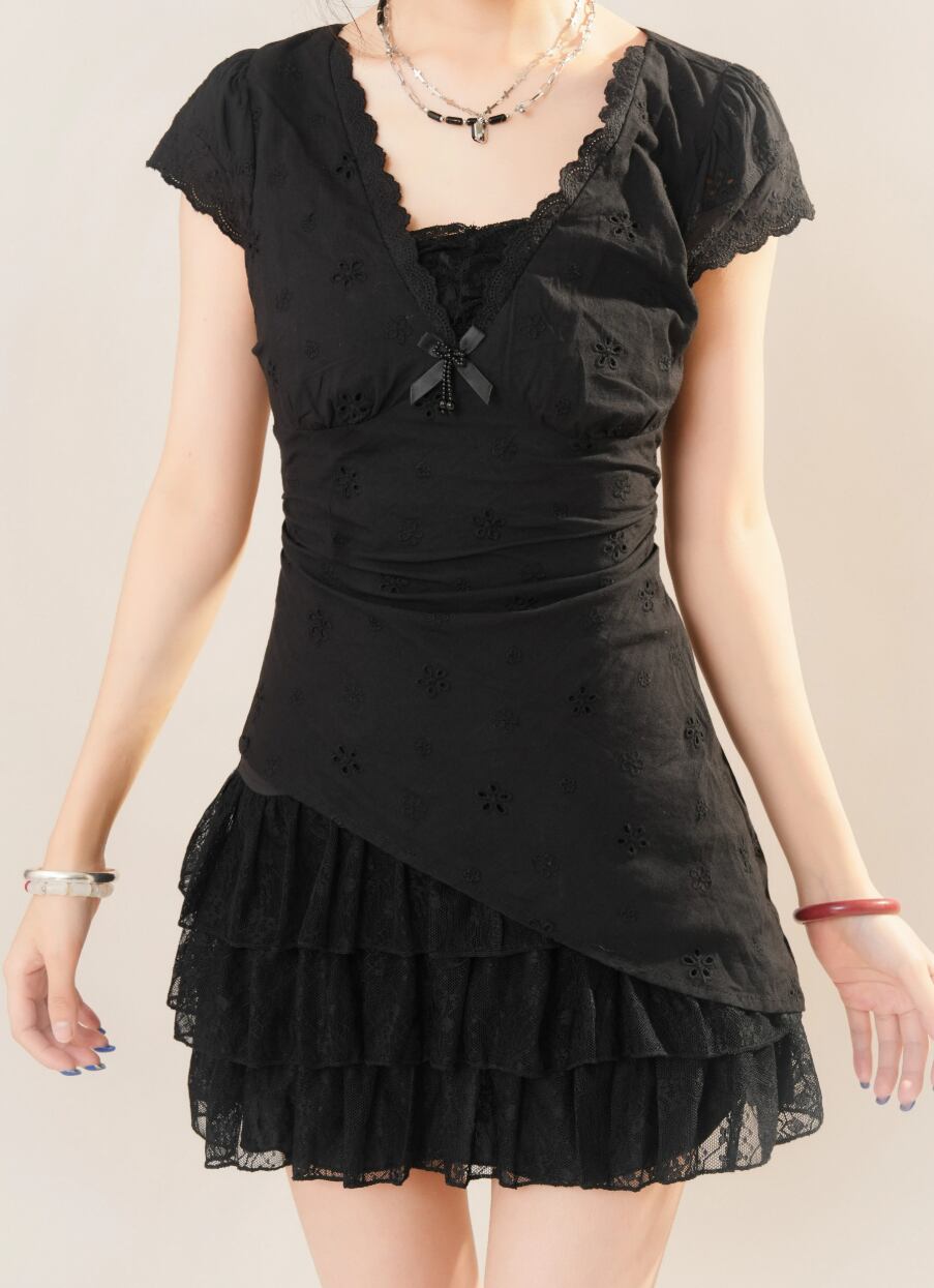 ティアードレースリボンノースリワンピ ・66928