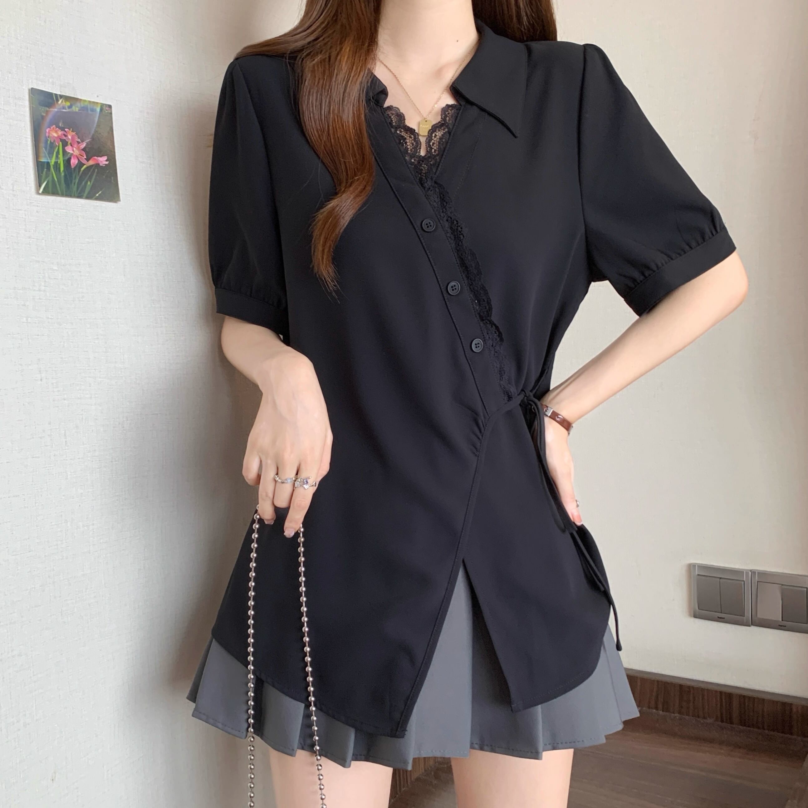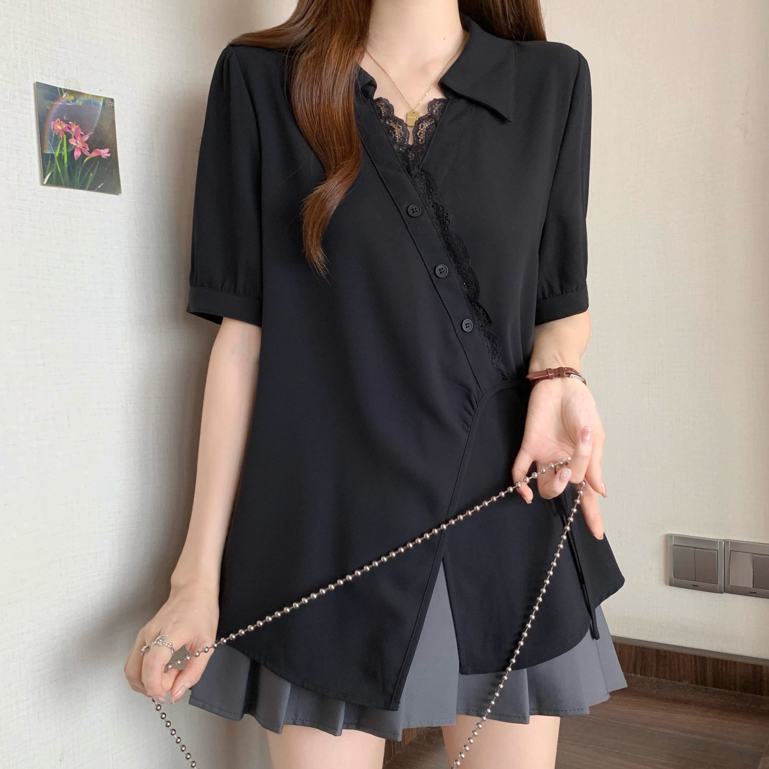 ボリュームスリーブレースラウンドカラーブラウス ・67546