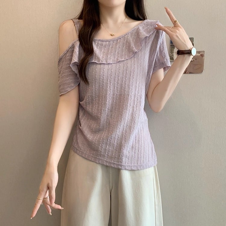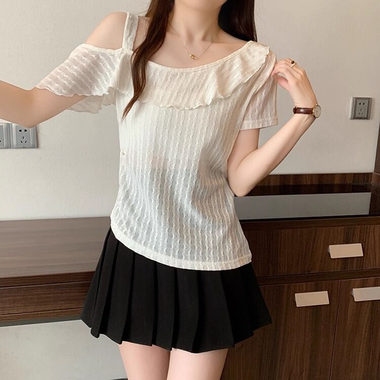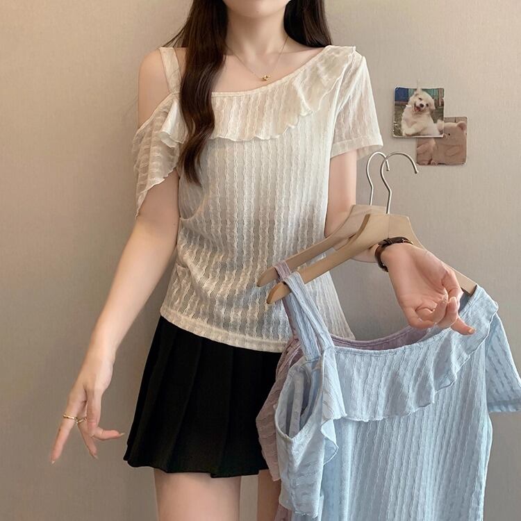 レースカラーアシメボタンドッキングトップス ・71106