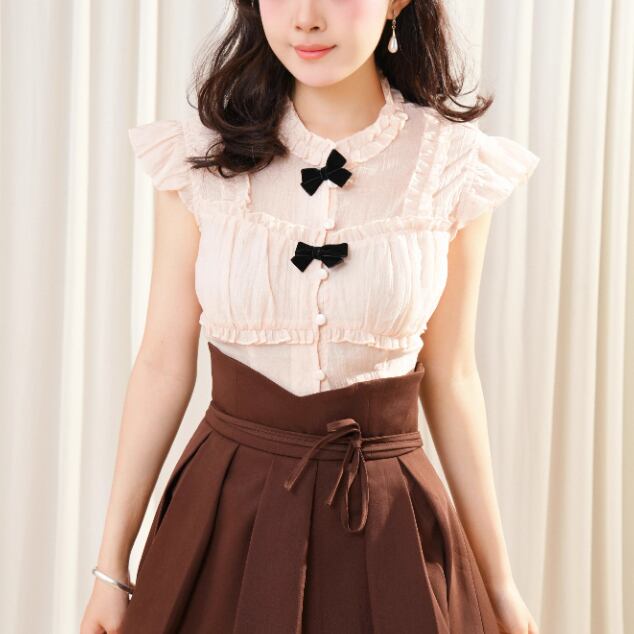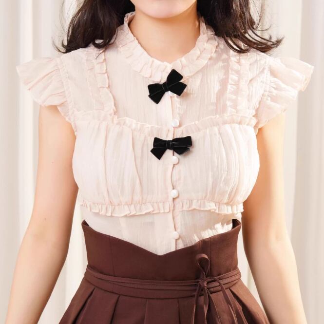 2色/フリルネックリボンブラウス ・60387