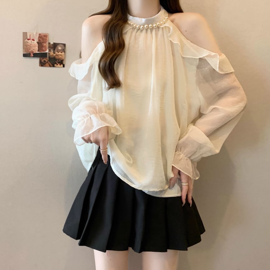 ボリュームスリーブレースラウンドカラーブラウス ・67546