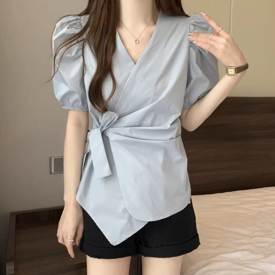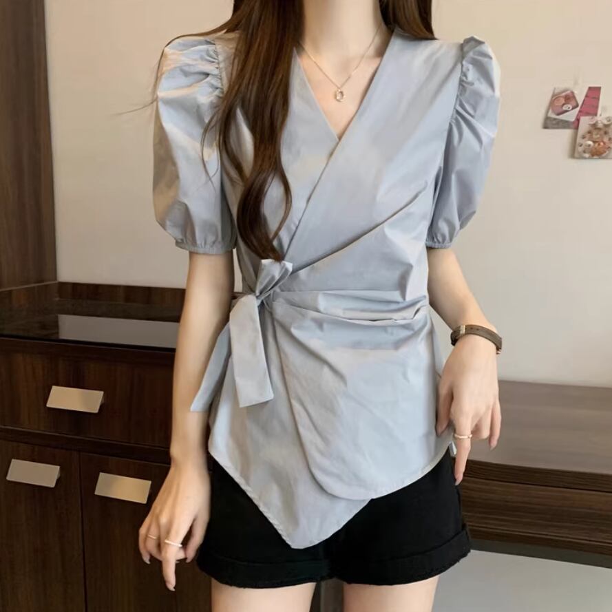 ボリュームスリーブレースラウンドカラーブラウス ・67546