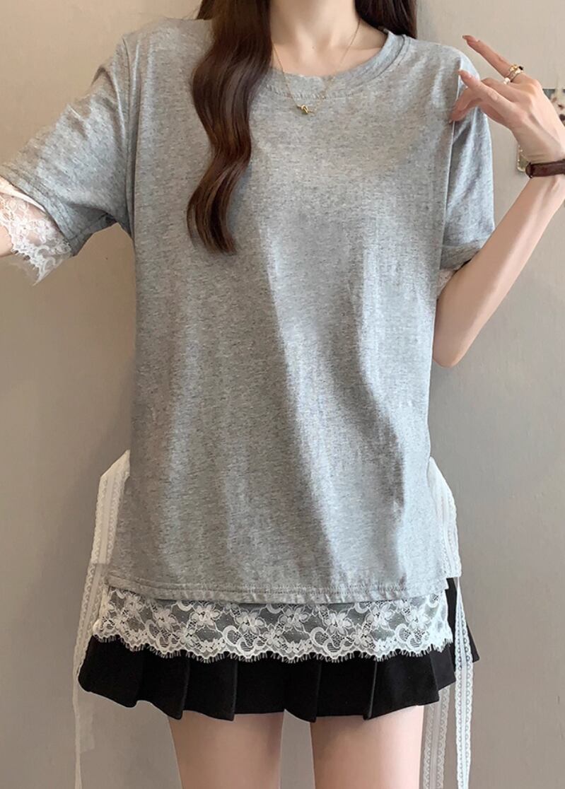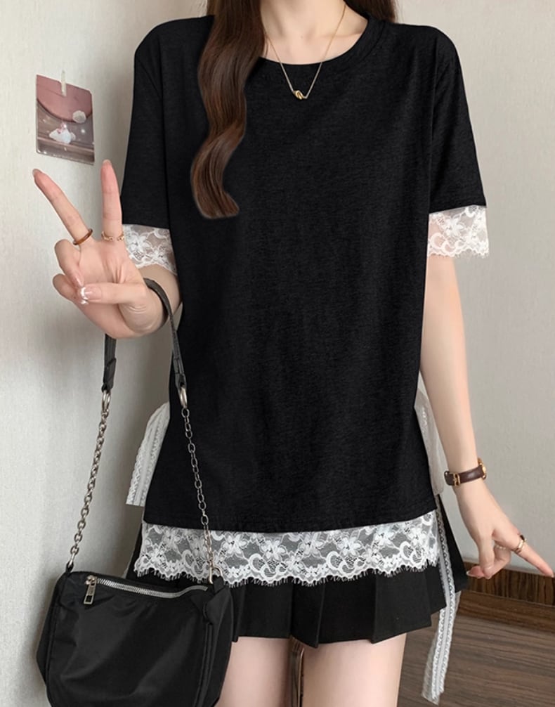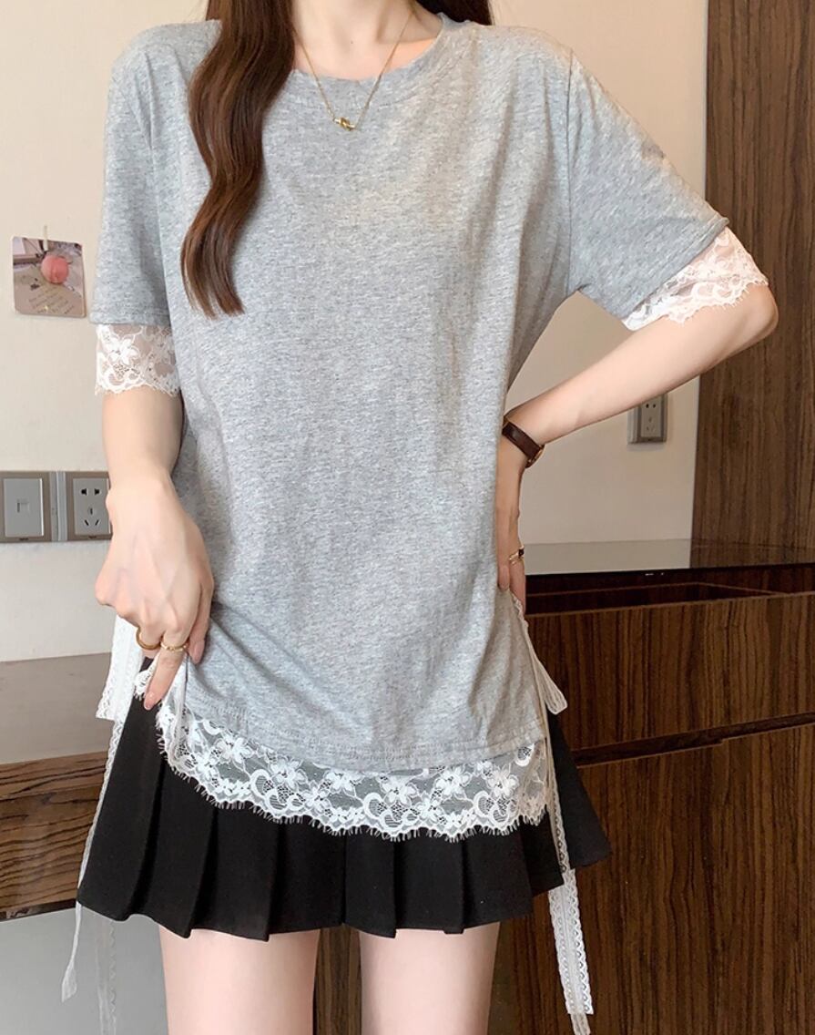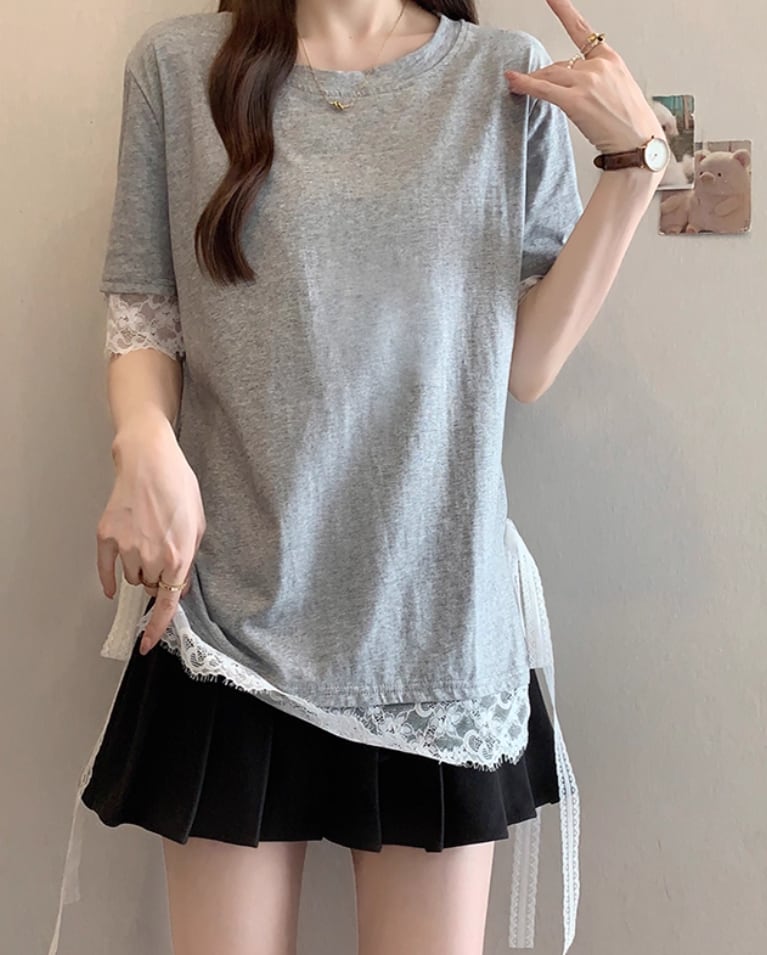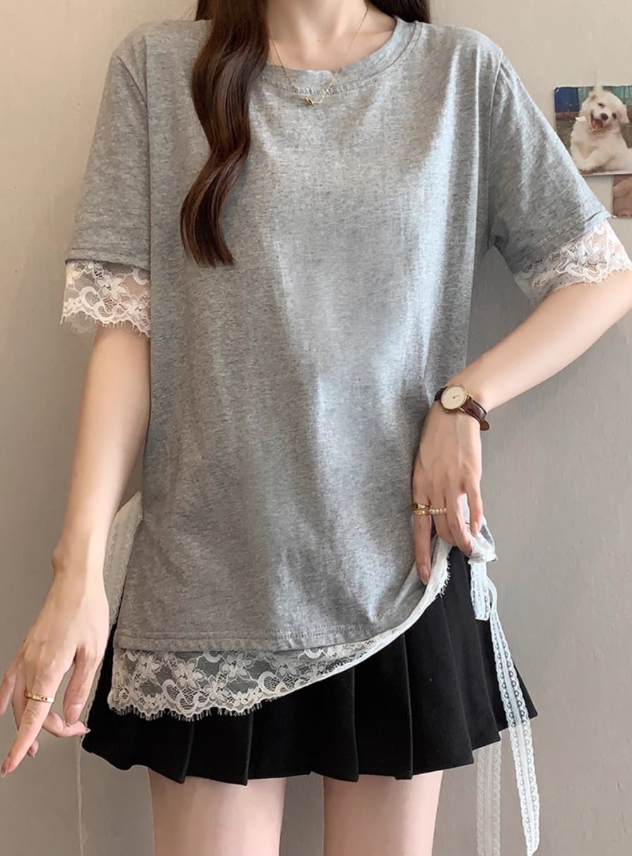 レースカラーアシメボタンドッキングトップス ・71106