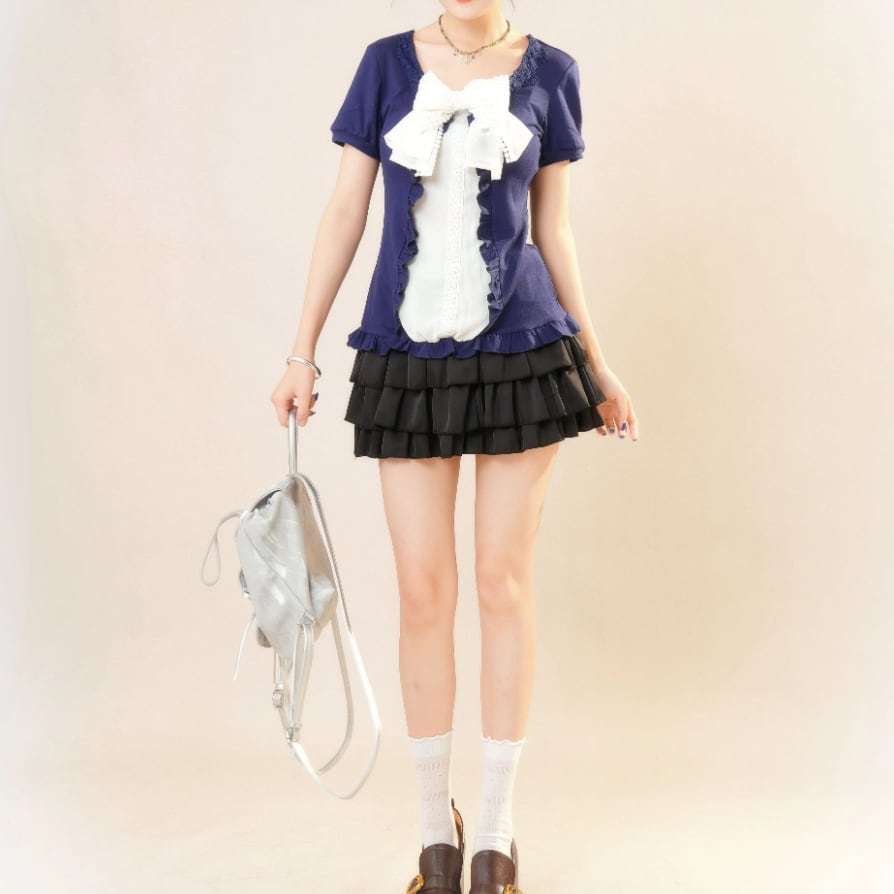 【3点セット】ショート丈ジャケット+リボンチューブトップ+フリルスカパン ・66750