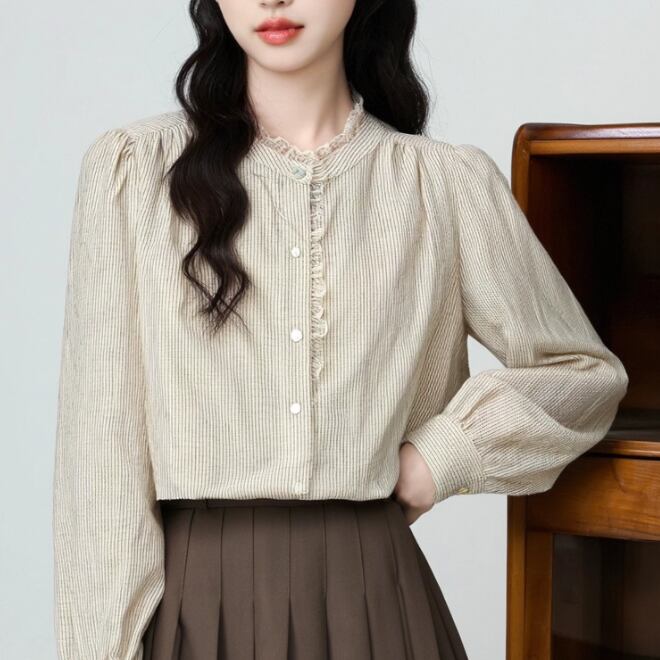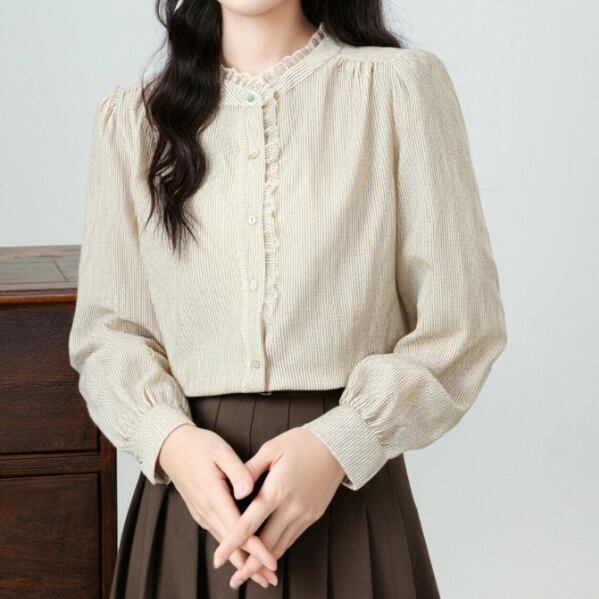 ボリュームスリーブレースラウンドカラーブラウス ・67546