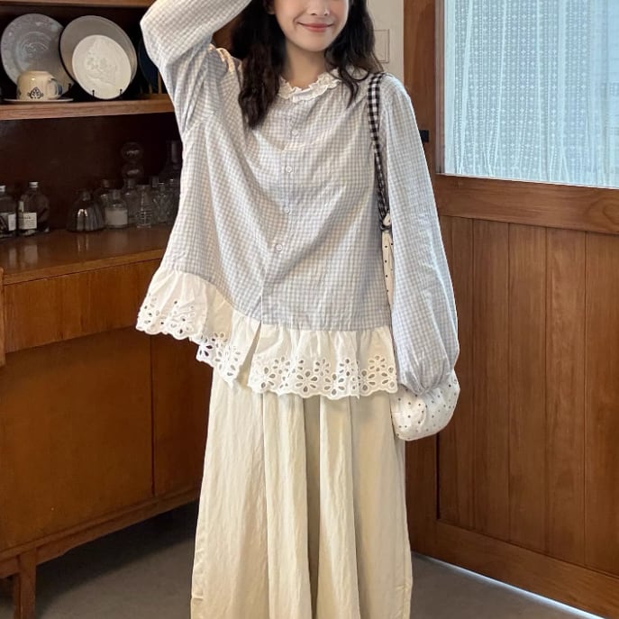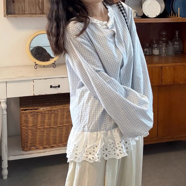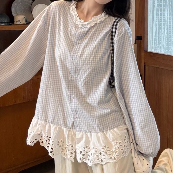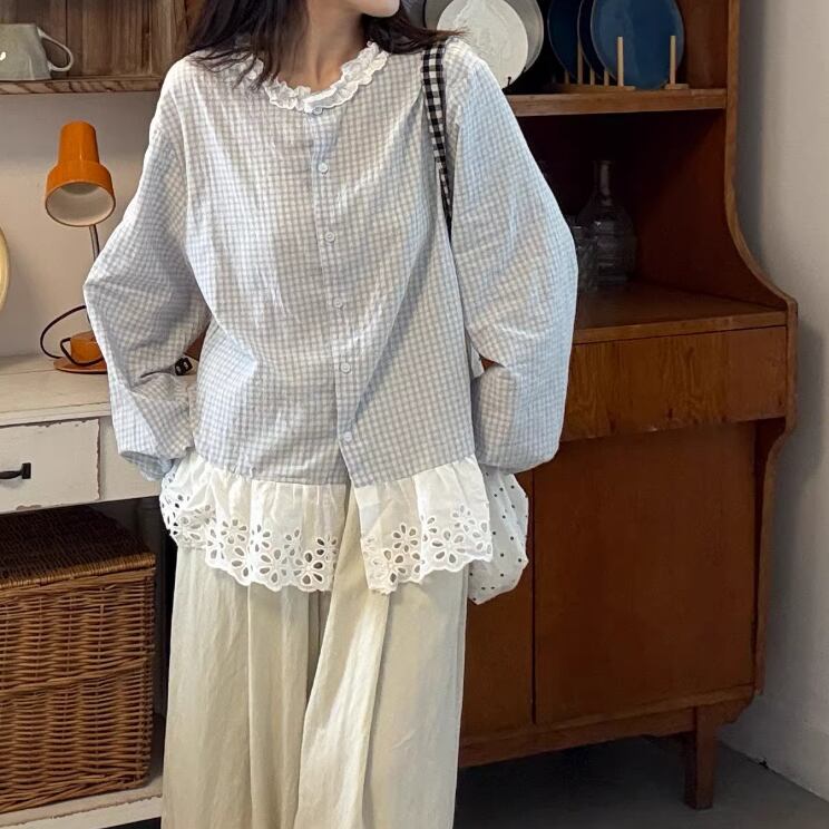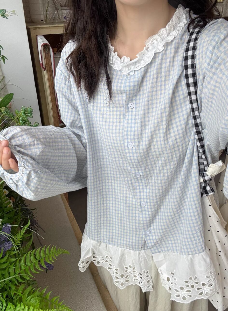 ボリュームスリーブレースラウンドカラーブラウス ・67546