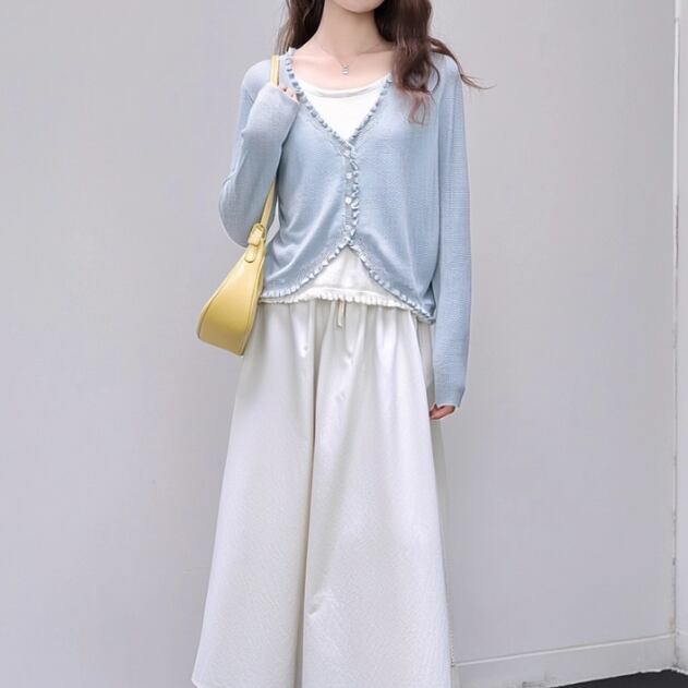 ▽Instagram「新作情報配信中」 フォローお願いいたします。 https://www.instagram.com/sucrier_closet/ ▼カラー ブルー ▼サイズ [ Sサイズ ] 着丈58.8cm バスト88cm 肩幅33cm 袖丈56cm [ Mサイズ ] 着丈59.5cm バスト92cm 肩幅34cm 袖丈57cm [ Lサイズ ] 着丈60.2cm バスト96cm 肩幅35cm 袖丈58cm ※1-3cm程度の誤差がある場合がございます。予めご了承ください。 ▼シーズン 春,秋 ▼同じカテゴリの商品はこちら https://www.sucrier.jp/categories/1713095 ▽お支払い方法 ・クレジットカード決済 ・キャリア決済 (docomo/au/Softbank/Y!mobile) ・後払い決済 (商品お届け後コンビニ払いなど) ▽注意点 ※こちらの商品は決済から10日-3週間前後でのお届けとなります。 ※配送日時指定等に関しては、ご指定できないことご了承くださいませ。 ※できる限り早くお届けできるように手配させて頂きます。 ※検品はしておりますが、もし届いた商品に不備がありましたら、誠実に対応させていただきます。 商品ID:SC071349