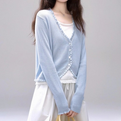レースカラーアシメボタンドッキングトップス ・71106