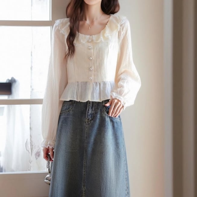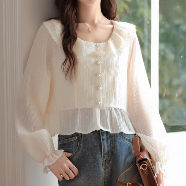 ボリュームスリーブレースラウンドカラーブラウス ・67546