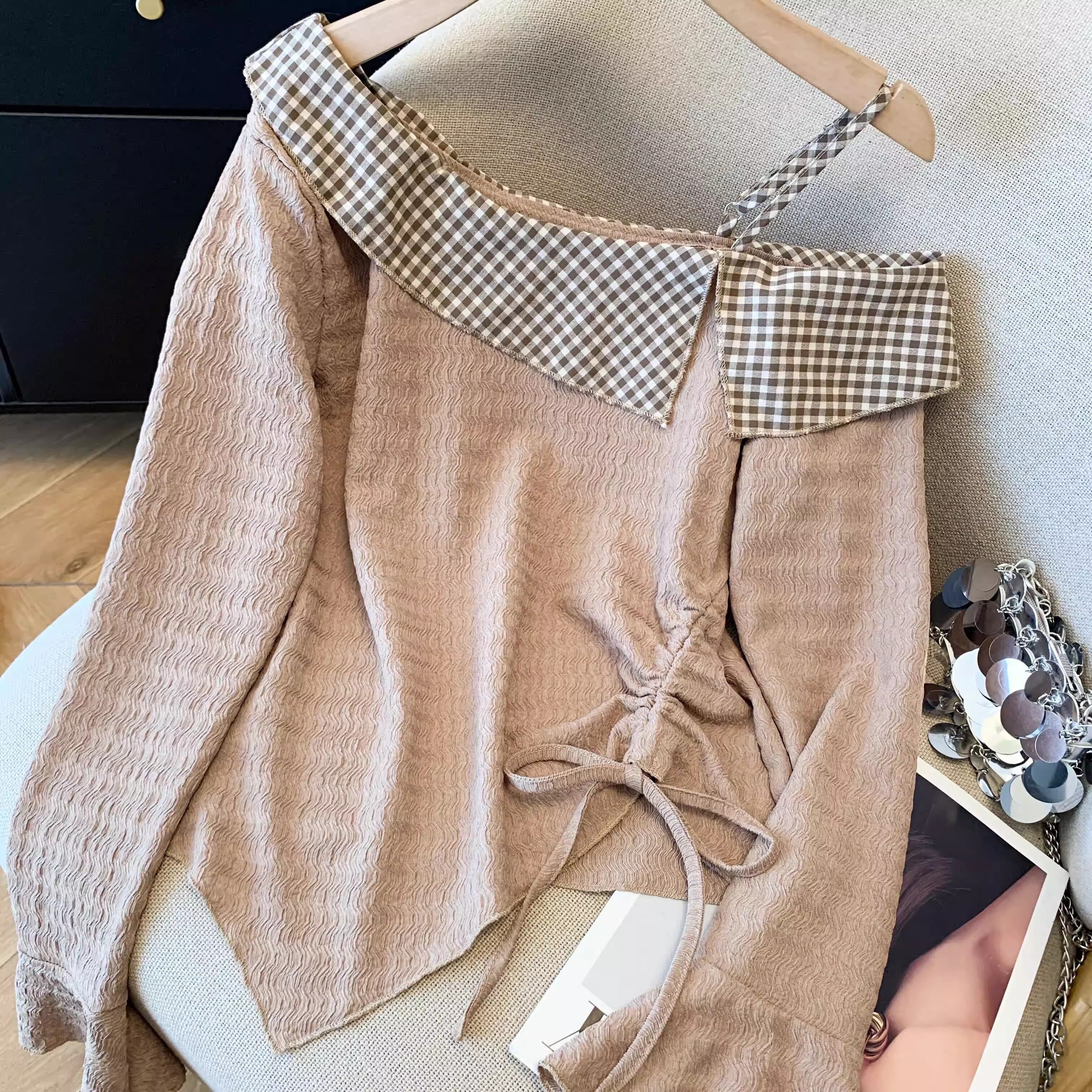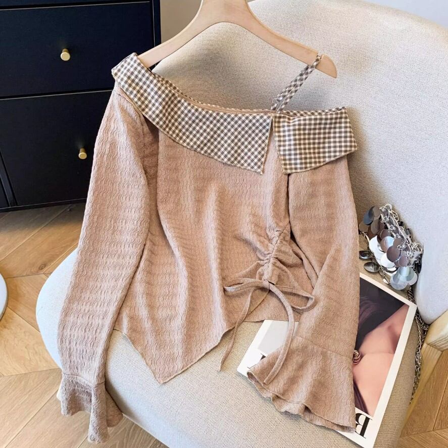 レースカラーアシメボタンドッキングトップス ・71106