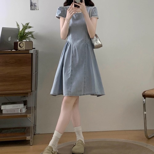 【2点セット】ストライプ柄パフスリーブワンピ+ベルト ・68546