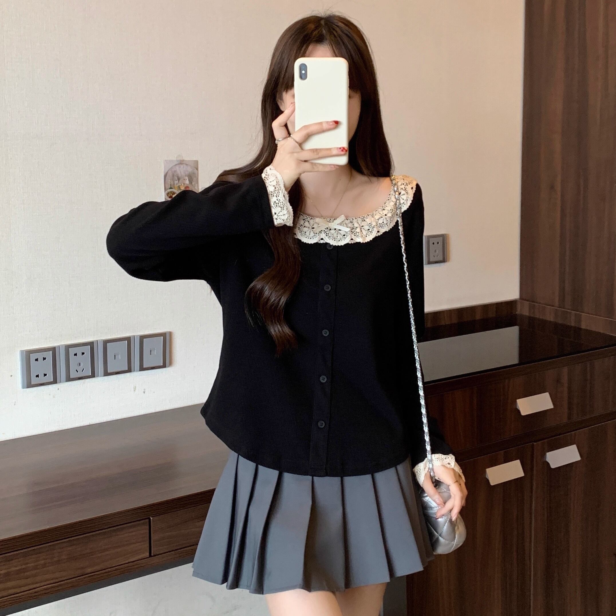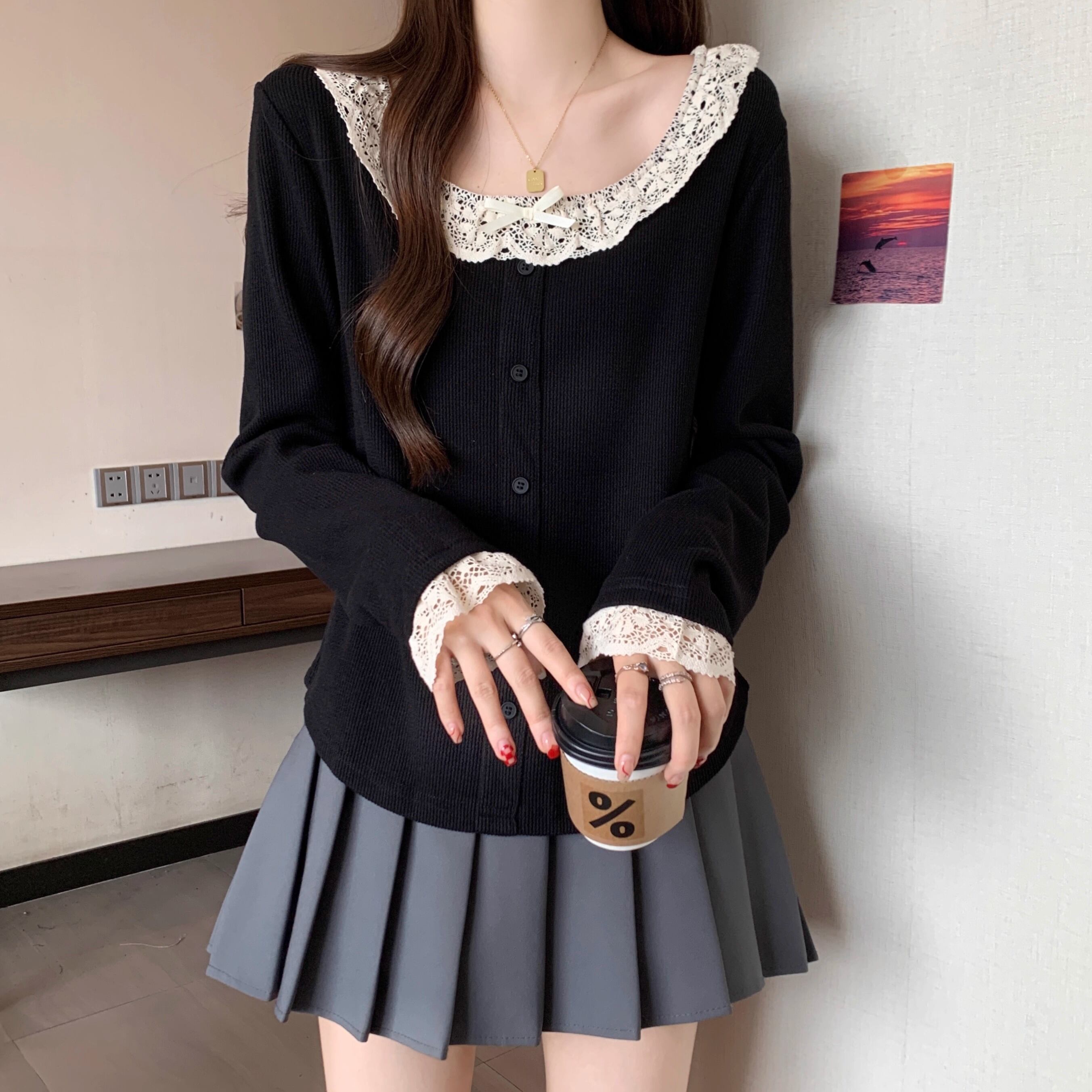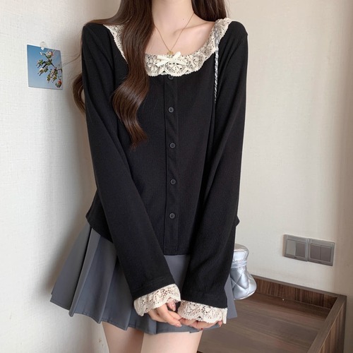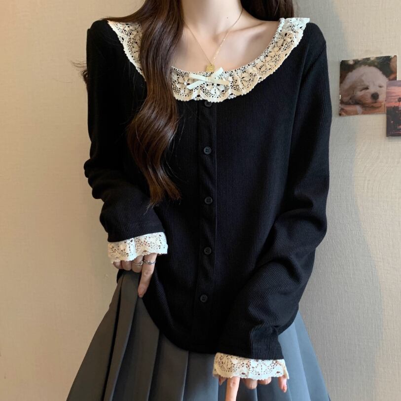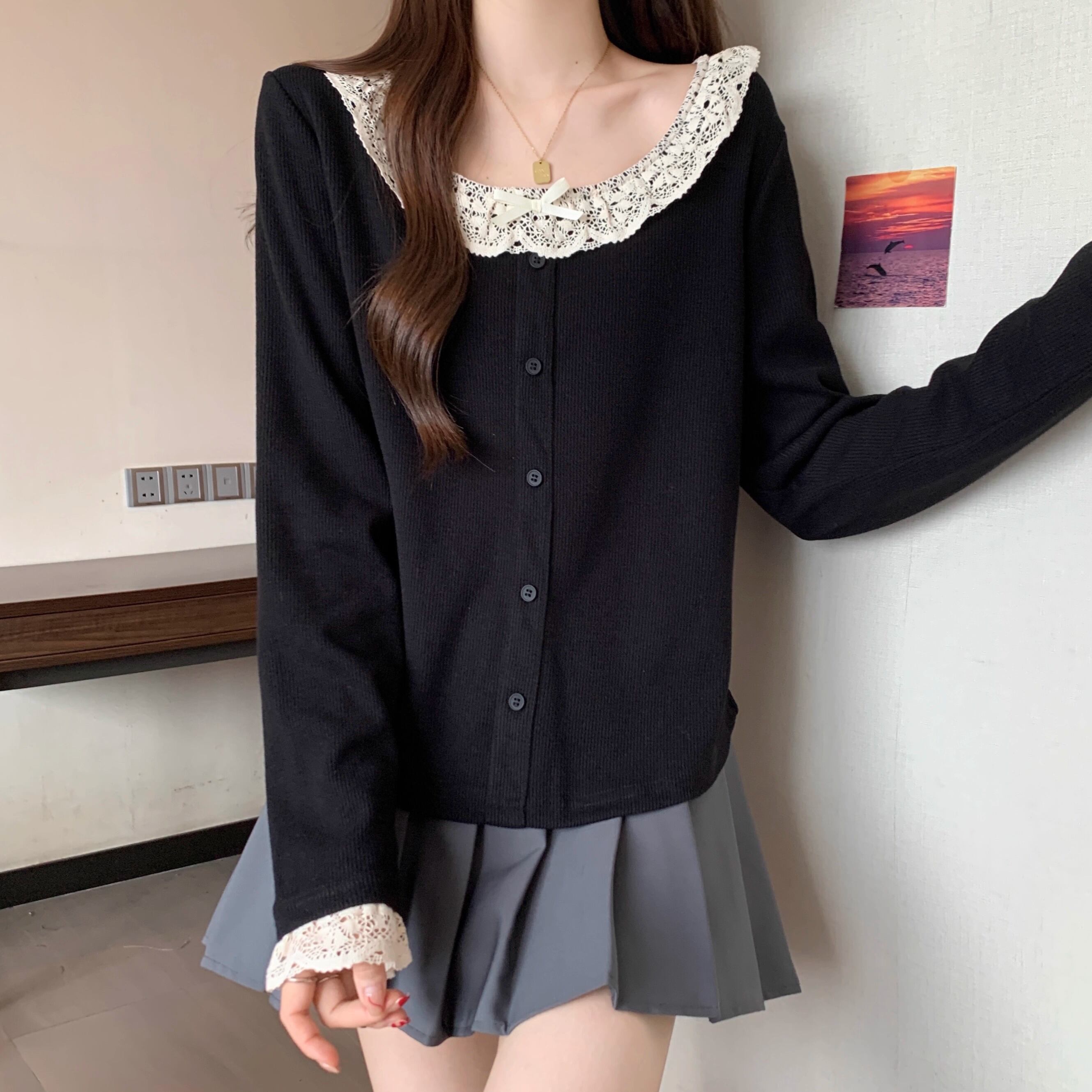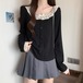 レースカラーアシメボタンドッキングトップス ・71106